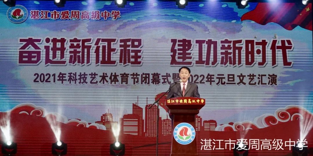 中国新征程在历史的长河中奔腾,湛江爱高新精彩在元旦的舞台中呈现。今年是我们伟大的中国共产党建党一百周年,十四五良好开局,国家开始踏上新的赶考路,我校积极响应国家的号召,紧跟时代的脚步,不忘初心、牢记使命,以赶考的历史清醒和坚定执着,奋力谱写我校高质量发展新篇章,努力在湛江爱高的校园舞台上,开启属于湛江爱高新的征程。