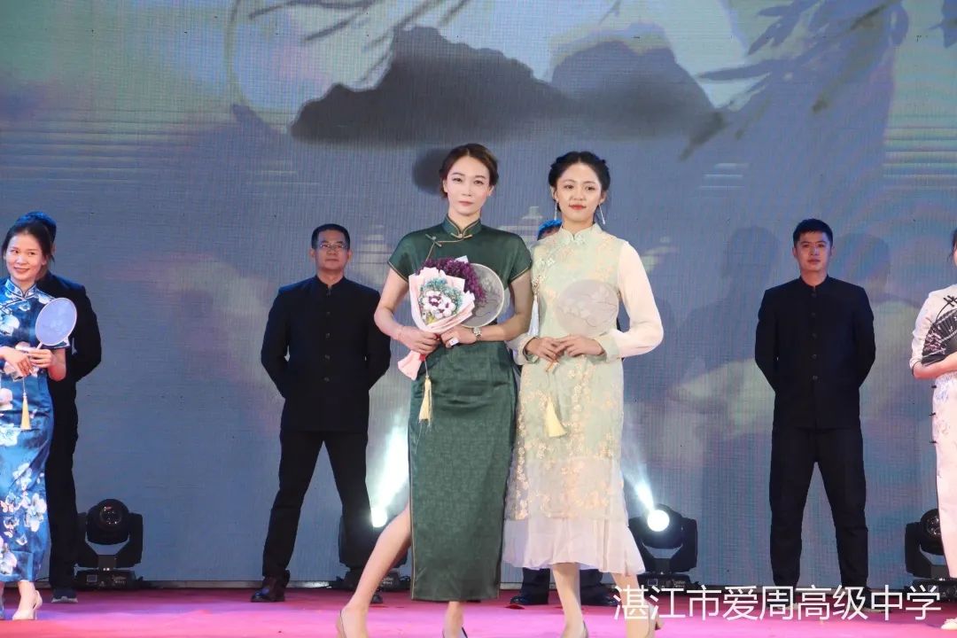 教师中山装和旗袍走秀《思华年》展现了我校教师的崭新风采。身着各式秀美旗袍、典雅复古的女教师和风度翩翩、绅士儒雅的男教师在舞台上款款走来,教师组新颖的走秀形式赢得了现场观众的啧啧称赞和热烈的掌声。教师组的朗诵《英雄》,扎实的朗诵功底和充沛的情感深深感染了现场的每一位师生,勾勒出了战火纷飞年代中一个个平凡的英雄形象,这是一首诗歌演绎而成的恢弘的华夏颂。