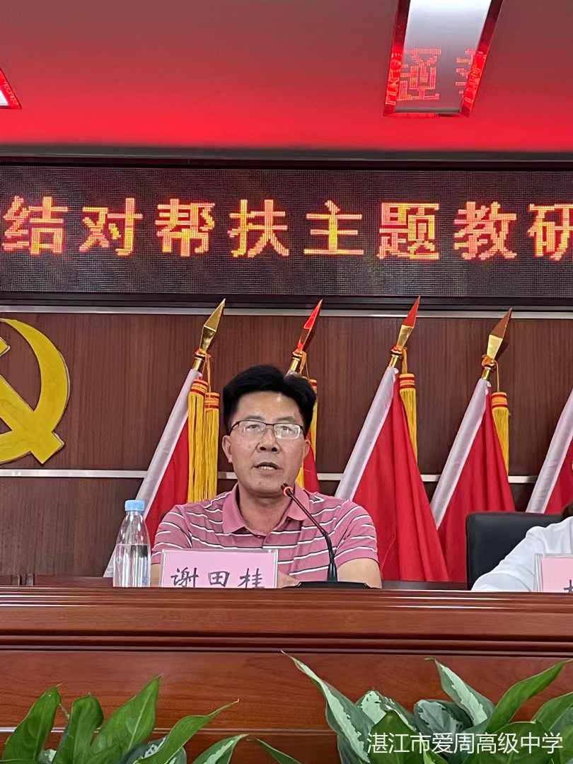 下午3点半,“结对帮扶助共进 名师引领促提升”校本研修结对帮扶主题教研活动在遂溪三中学术报告厅举行。活动由遂溪三中教研室吴兴涛主任主持,遂溪县教育局副局长谢田桂,遂溪三中党总支书记、校长李华贵,遂溪县教育局教研员林梅红老师及遂溪三中全体领导、老师出席了本次活动。