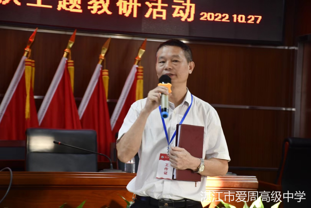 遂溪三中李华贵校长作总结,他对我校团队的到来再次表示感谢。他希望各位老师能积极学习,不断进取,提高自身教育教学水平,在工作上享受教育教学的乐趣,努力成长为名师。他说,“行万里路,不如遇到一个好向导”,湛江市爱周高级中学帮扶小组的到来,恰好为学校的教育教学工作提供了很好的指导,建议大家把今天所学落实到具体工作中,努力创造新佳绩。