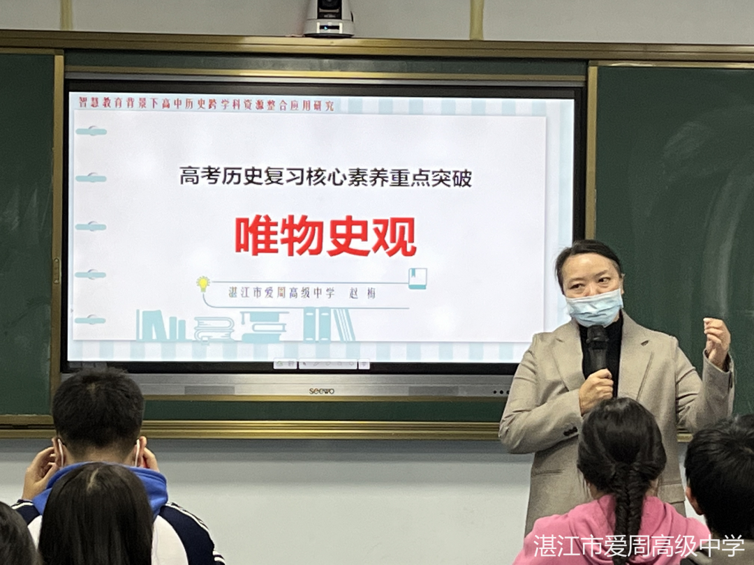 上午第三节课,我校赵梅老师在唐家中学录播室为高三(1)班的同学上了一节将跨学科知识进行整合运用研究的高三历史复习课。唐家中学的陈海主任等领导及全体历史教师认真观摩了本节课。本节课《高考历史复习核心素养重点突破——唯物史观》,赵梅老师主要从为什么要了解唯物史观、什么是唯物史观、唯物史观的基本内容、唯物史观的解读、唯物史观在高考历史复习中的注意事项五个方面展开课堂教学。在讲解唯物史观的过程中,适时链接高考真题,让学生运用唯物史观相关理论去解读高考历史真题材料,加强对学生解答高考真题的学法指导,培养学生的解题能力、史料实证、唯物史观核心素养。并结合政治学科历史唯物主义相关知识进行学习活动设计,加强不同学科间知识的联系,综合发挥育人功能,推进融合性与探究性为一体的深度学习方式,培养学生的跨学科意识、思维与能力。