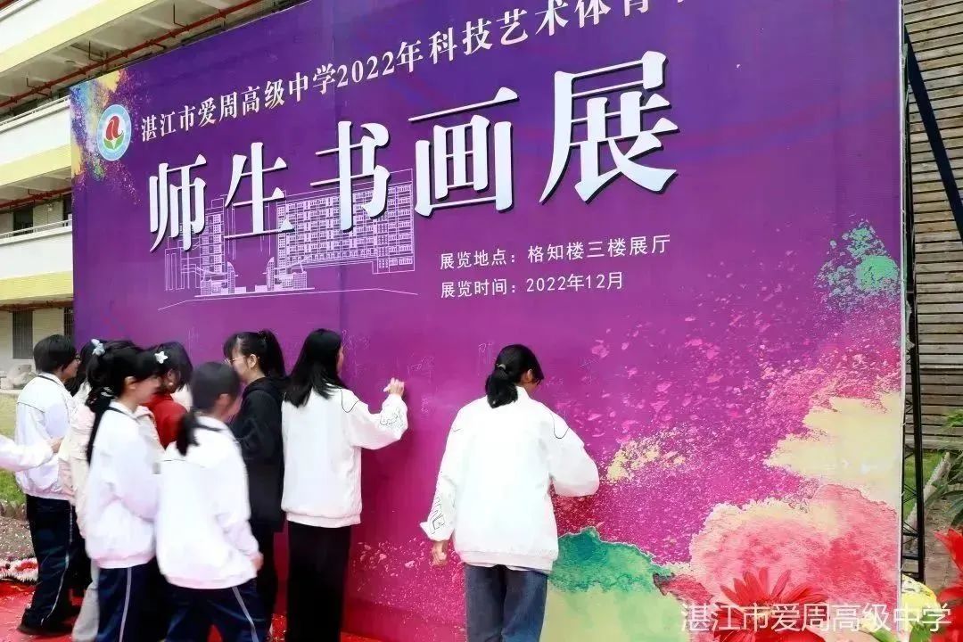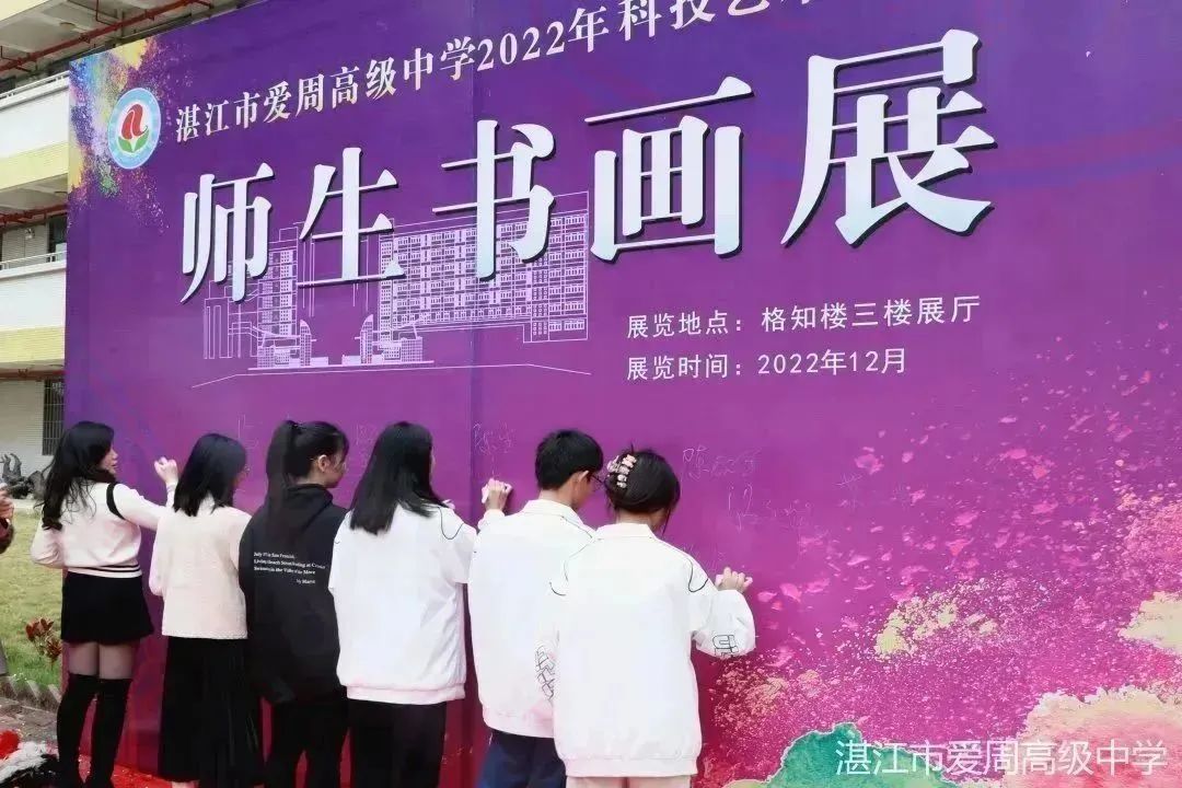 我校梁哲校长作了热情洋溢的讲话。梁校长表示,师生书画作品展是我校科技艺术体育内容的重要组成部分,展出的部分优秀书画作品生动展现了中华优秀传统文化的魅力,热情讴歌了党的丰功伟绩,内容丰富,表现表达手法方式多样,比较全面地体现了我校2022年度艺术教育的成绩。梁校长强调,我校积极举办书画展有重要意义,一方面它展示了我校作为广东省艺术教育特色学校、广东省书法教育名校、全国中华优秀传统文化传承学校和全国信息技术示范学校所取得的艺术教育成果的不断推进;另一方面,书画作品展为全校广大书画爱好者搭建展示才华、互相交流的舞台,激发老师同学们喜爱和传承中华民族优秀传统文化,进一步提高老师同学们的审美情趣和审美能力。