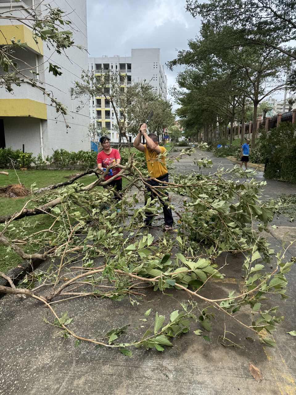 10月4日,台风“麦德姆”逼近,校园里有一群人早已严阵以待。值班行政领导迅速响应,第一时间投入防御——黄伟强主席、陈环平主任、简历主任与黄中秋副主任组织留校师生安全疏散,李元锋老师协同排查隐患、搬运物资……他们在风雨来临前,为校园筑起一道坚实的防灾屏障。