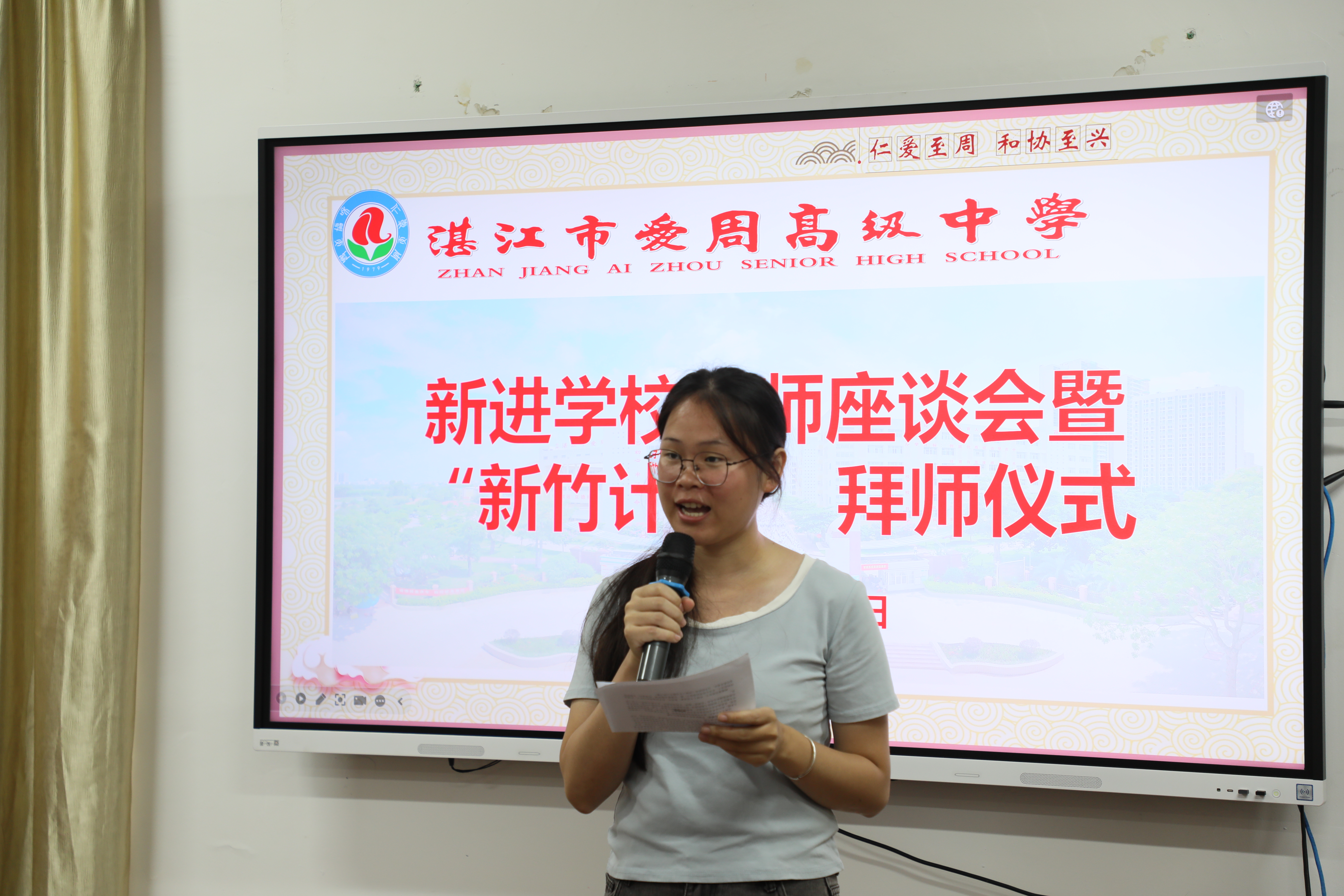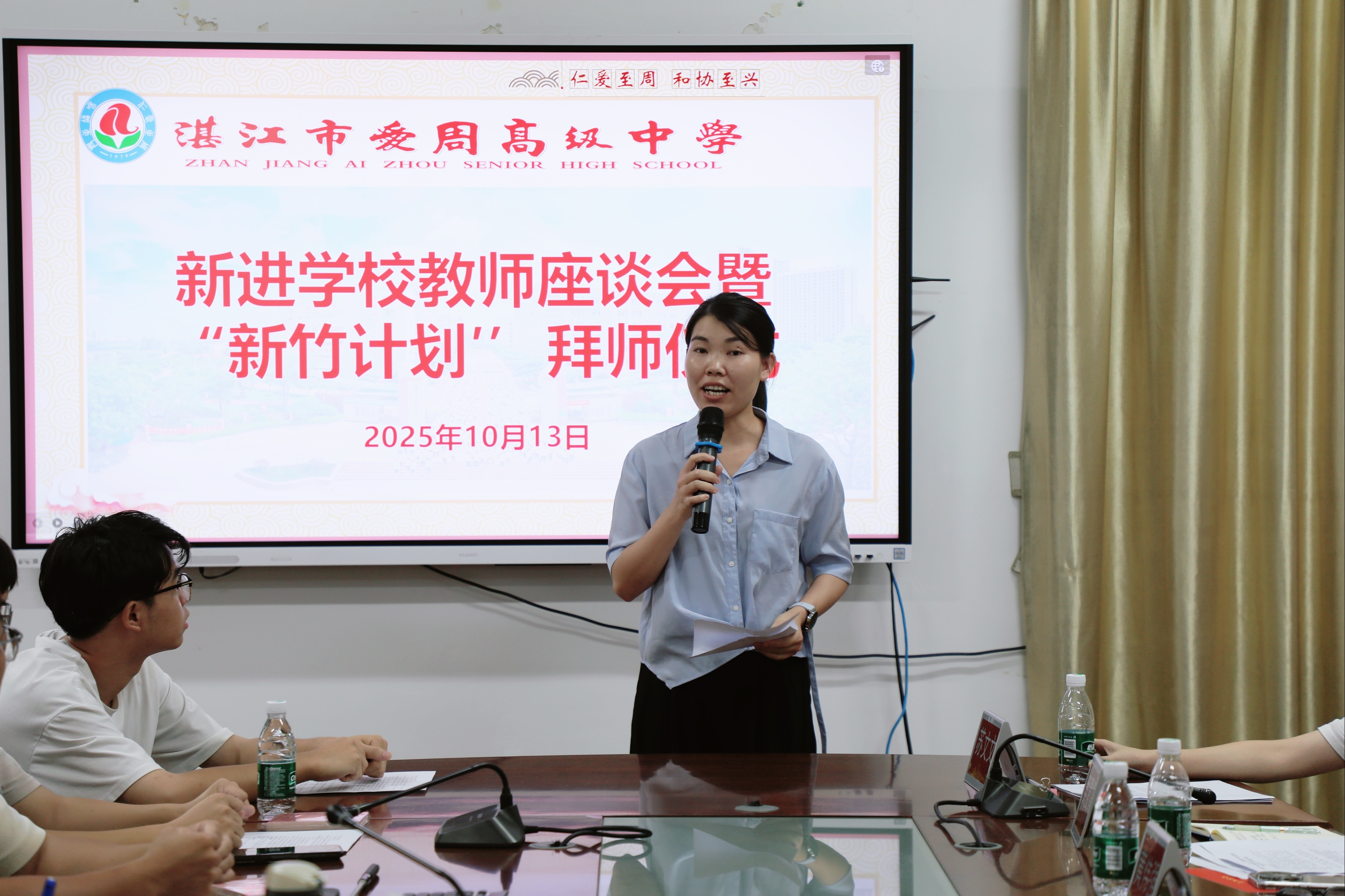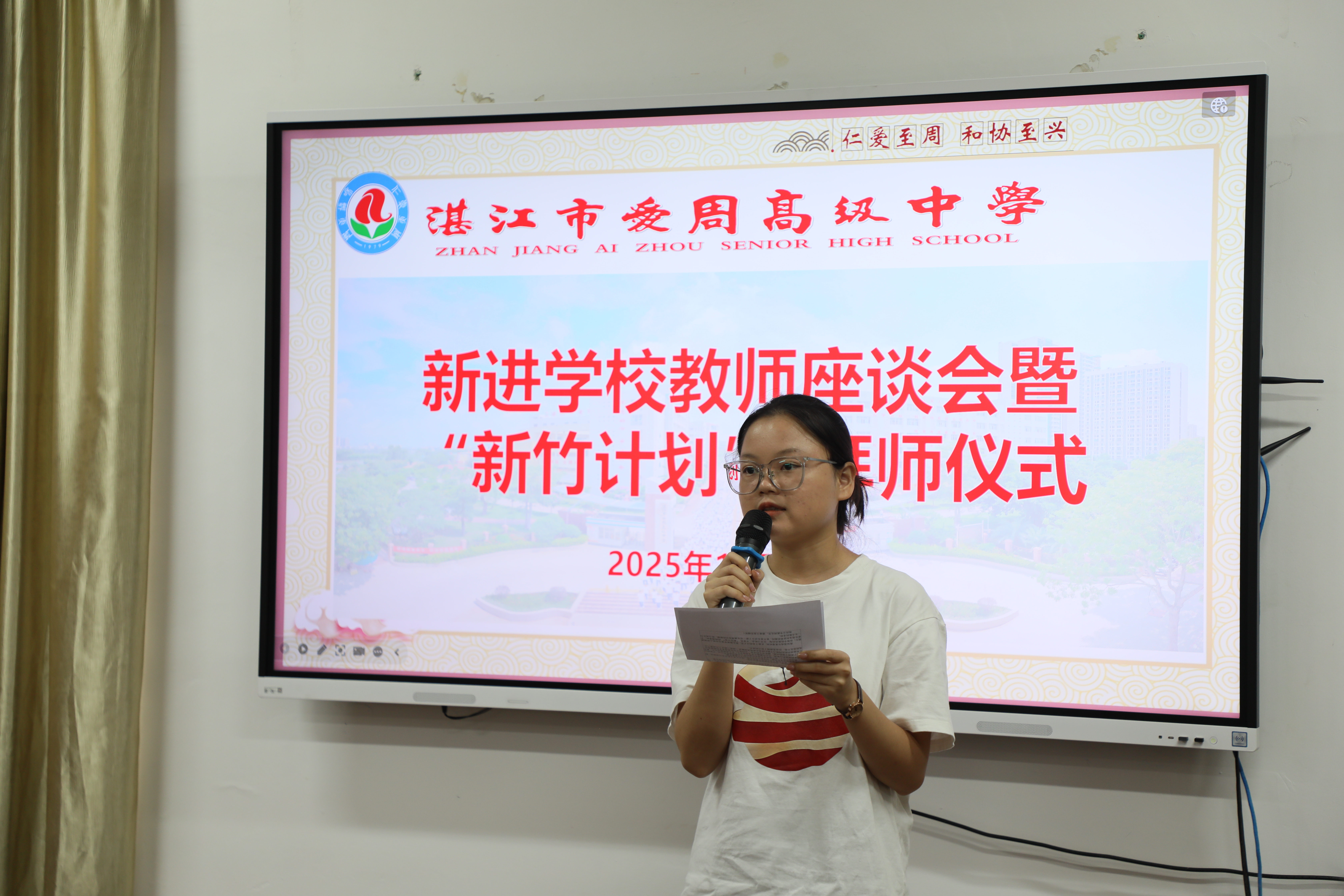 教导处苏文文副主任解读 《湛江市爱周高级中学教师专业发展“新竹计划”实施方案》。她从计划的设计初衷、核心目标、结对原则及保障措施等方面进行细致阐述,强调 “新竹计划” 是助力青年教师快速融入教育教学工作、提升专业素养而搭建的重要平台,希望青年教师如雨后春笋般蓬,借骨干教师似劲竹般的深厚积淀,以 “传、帮、带” 为纽带,促教学相长、共赴卓越。