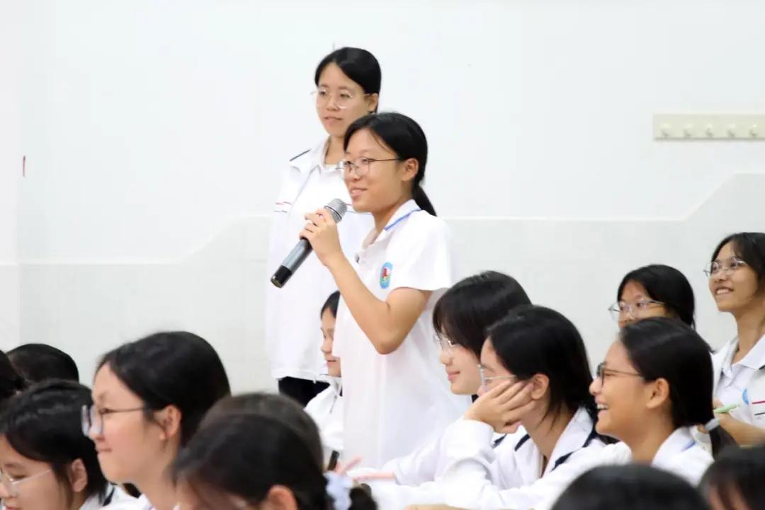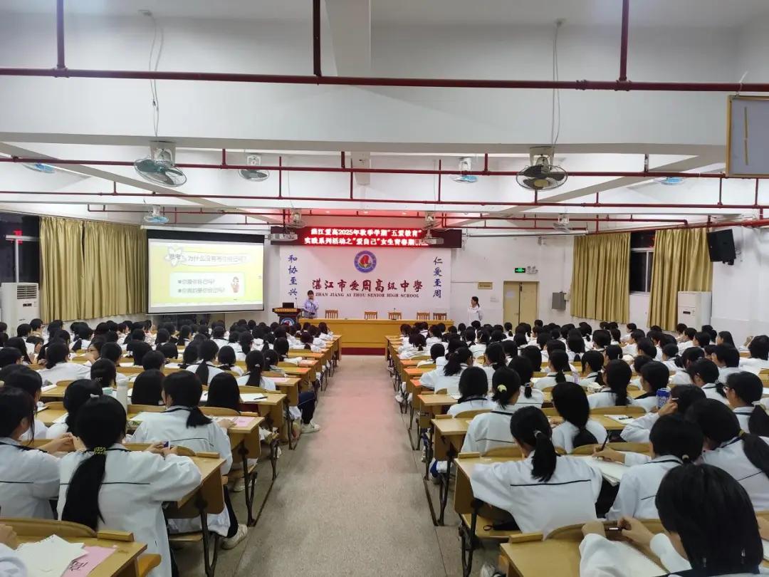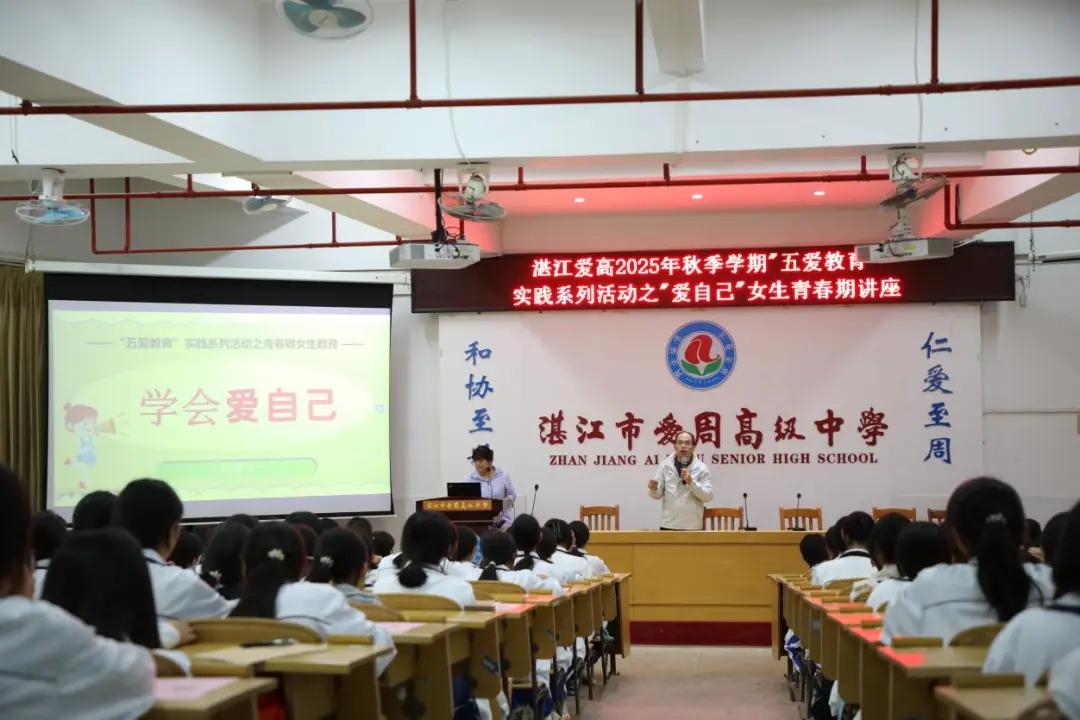 讲座在轻松愉快的互动游戏中拉开帷幕。学校专职心理教师邱倩文老师从女生们步入青春期后面临的生理、心理变化切入,用亲切的语言和生动的案例,为同学们揭开了成长的神秘面纱。邱老师指出,“爱自己”并非一句空洞的口号,而是“五爱教育”的基石。它意味着正确接纳自我,既要欣赏自己的优点,也能包容暂时的缺点与不完美;它意味着有效地管理情绪,学会与烦恼、焦虑和平共处,培养积极乐观的心态;它更意味着懂得保护与尊重,既要保护自己的身体与情感边界,也尊重他人的差异与选择。