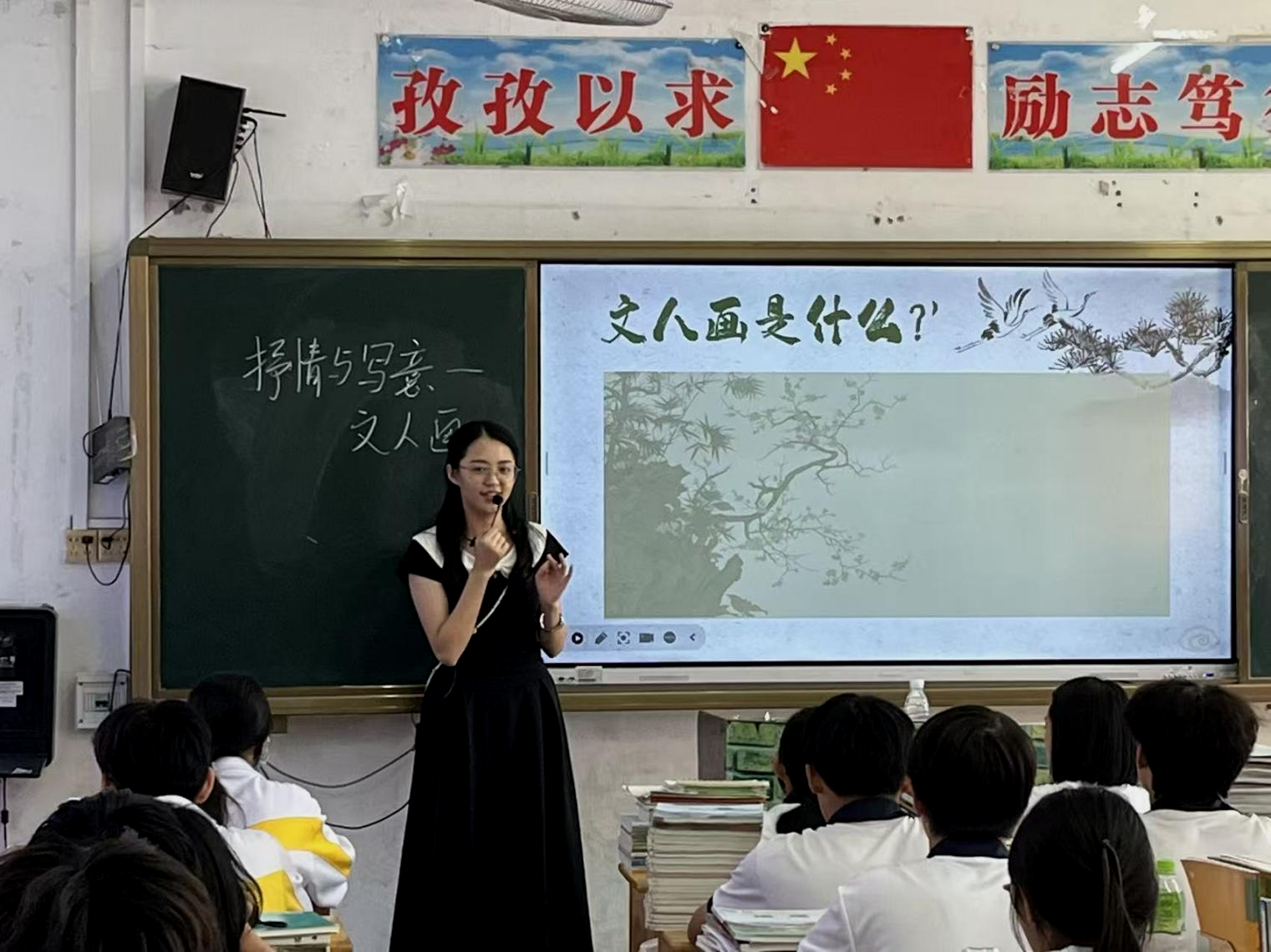 广东省何仁名教师工作室成员梁憬帆老师为高一(9)班学生带来了一节引人入胜的美术鉴赏课——《抒情与写意:文人画》。梁老师以“诗画联动”为主线,精准契合高一学生的认知规律,通过“情境导入—知识精讲—特征探究—实践巩固”四个环环相扣的环节,巧妙突破了“理解文人精神表达”的教学难点,成功引导学生实现了从“识画”到“懂意”的审美跨越。从概念阐释到历史流变,从鉴赏方法到创作实践,整堂课内容丰赡,引领学生漫步于文人画的艺术世界,将抽象的精神内涵具象化,深深触动了学生的审美心灵。