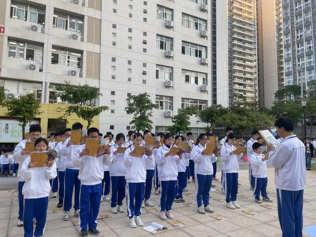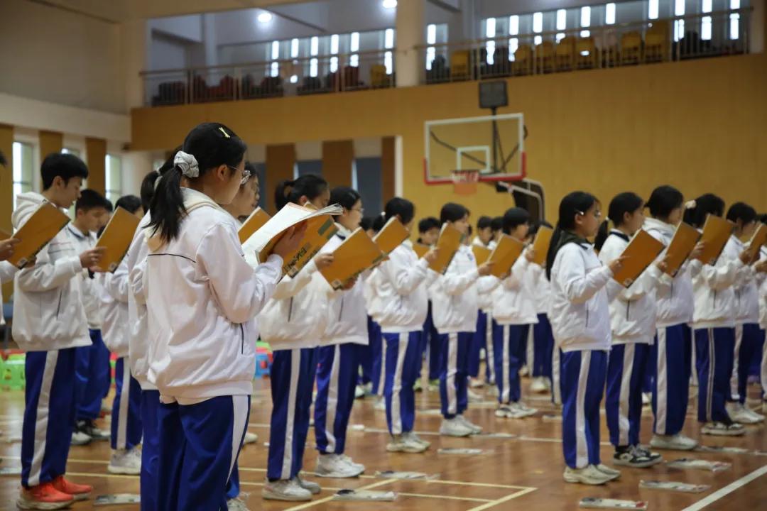 晨光微露,清风拂面。同学们队列整齐,精神抖擞,期待着在赛场上一展风采。比赛在吴诗莹、陈诗婷两位主持人热情洋溢的开场中拉开帷幕,她们在寄语中点明了晨读的深远意义:“早读是学习征程的黄金起点,持之以恒的读书习惯,不仅能筑牢学业根基,更让文化的种子在每一个清晨生根发芽。”这不仅是一次比赛动员,更是一堂生动的习惯养成教育课。