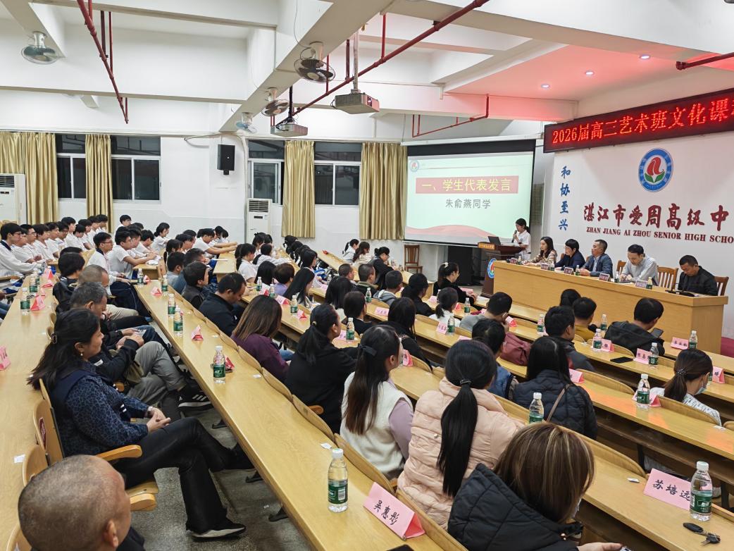 为凝聚备考合力,激发冲刺斗志,助力高三艺术生以最佳姿态迎战2026年高考,12月10日晚,我校在和协楼学术报告厅隆重举行2026届高三艺术生文化课备考动员大会。学校领导王健书记、柯胜智副校长、高三管理团队、艺术班全体师生及家长代表齐聚一堂,共同为学子们的冲刺征程加油鼓劲。