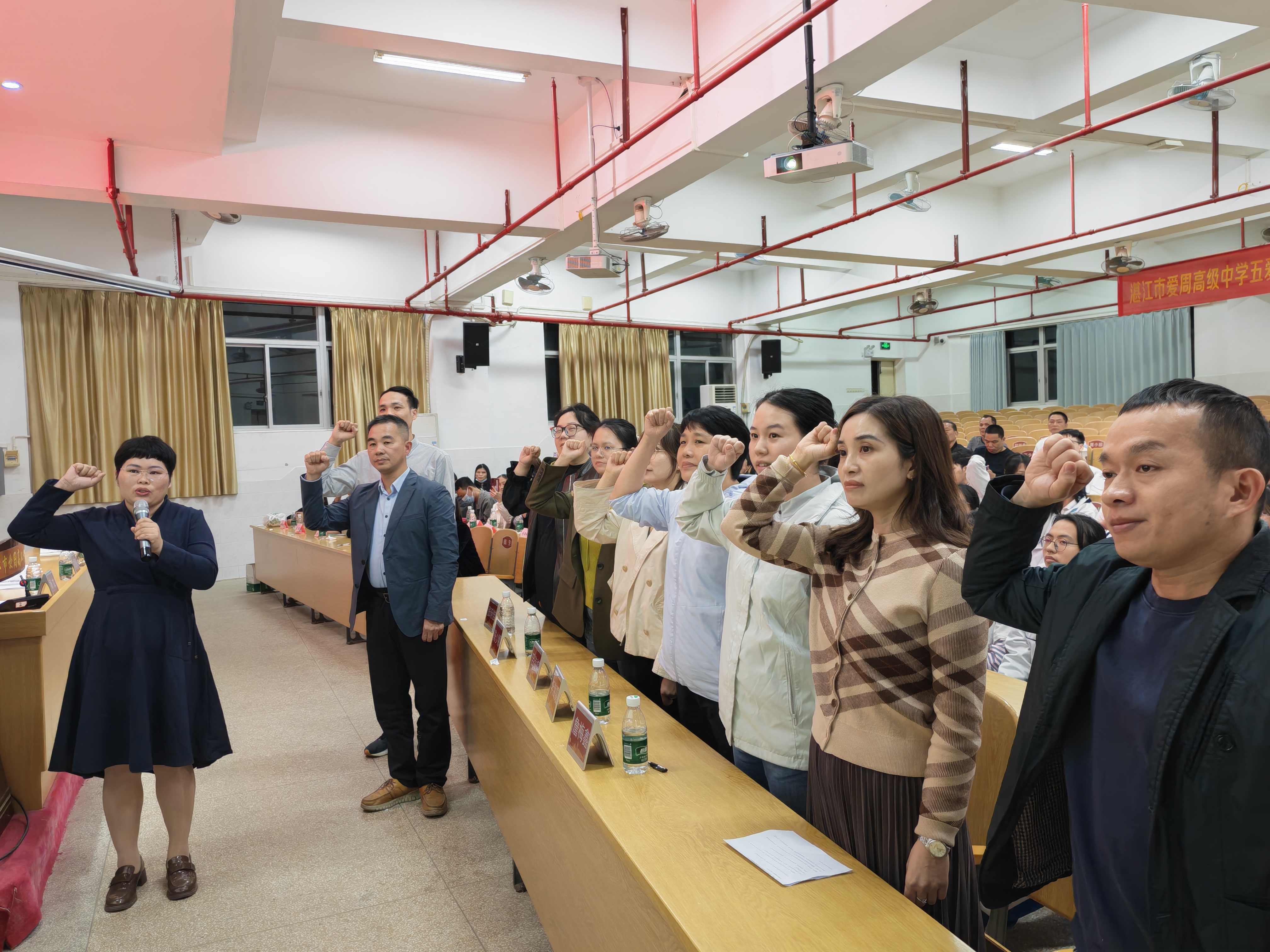大会进入高潮环节,高三艺术班全体教师在王健书记和柯胜智副校长的带领下庄严宣誓。铿锵有力的誓言回荡在学术报告厅内,不仅展现了全体教师深耕教学、关爱学生的责任担当,更传递了与学子们并肩作战、共克时艰的坚定信念,让在场学子与家长深受感动。紧接着,全体高三艺术生起立,举起右拳,庄严宣誓。“我们斗志昂扬、意志坚强!拼搏高三,我们的理想 扬帆起航!......” 激昂的誓言声震耳欲聋,表达了同学们决战高考的勇气与决心,展现了艺术学子们朝气蓬勃、勇往直前的精神风貌,将大会气氛推向顶点。