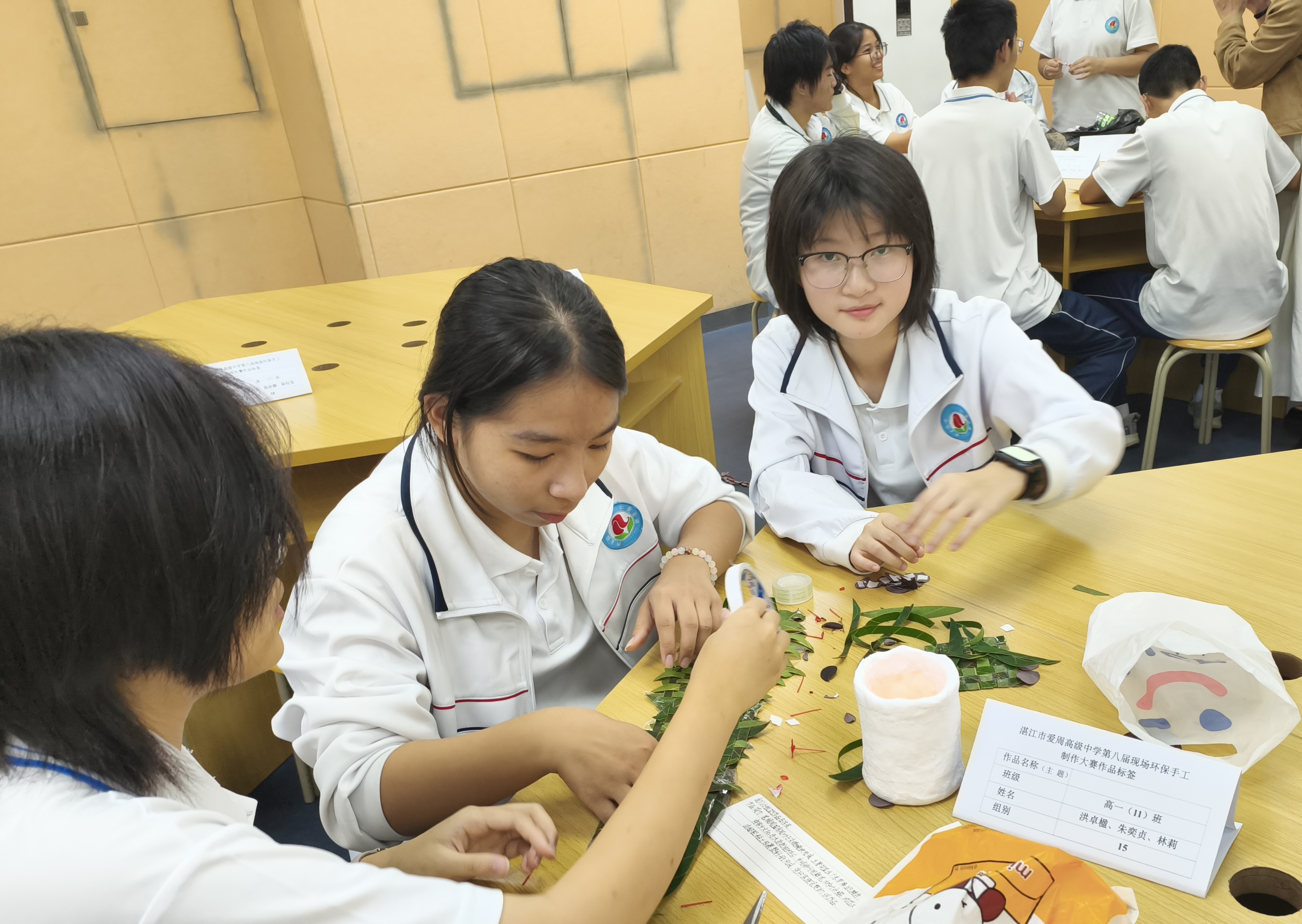 纸箱、塑料瓶、旧布料、落叶枯枝……这些常被忽略的生活废弃物,在同学们手中重获新生。当创意与匠心相遇,“无用”之物也能绽放独特价值。