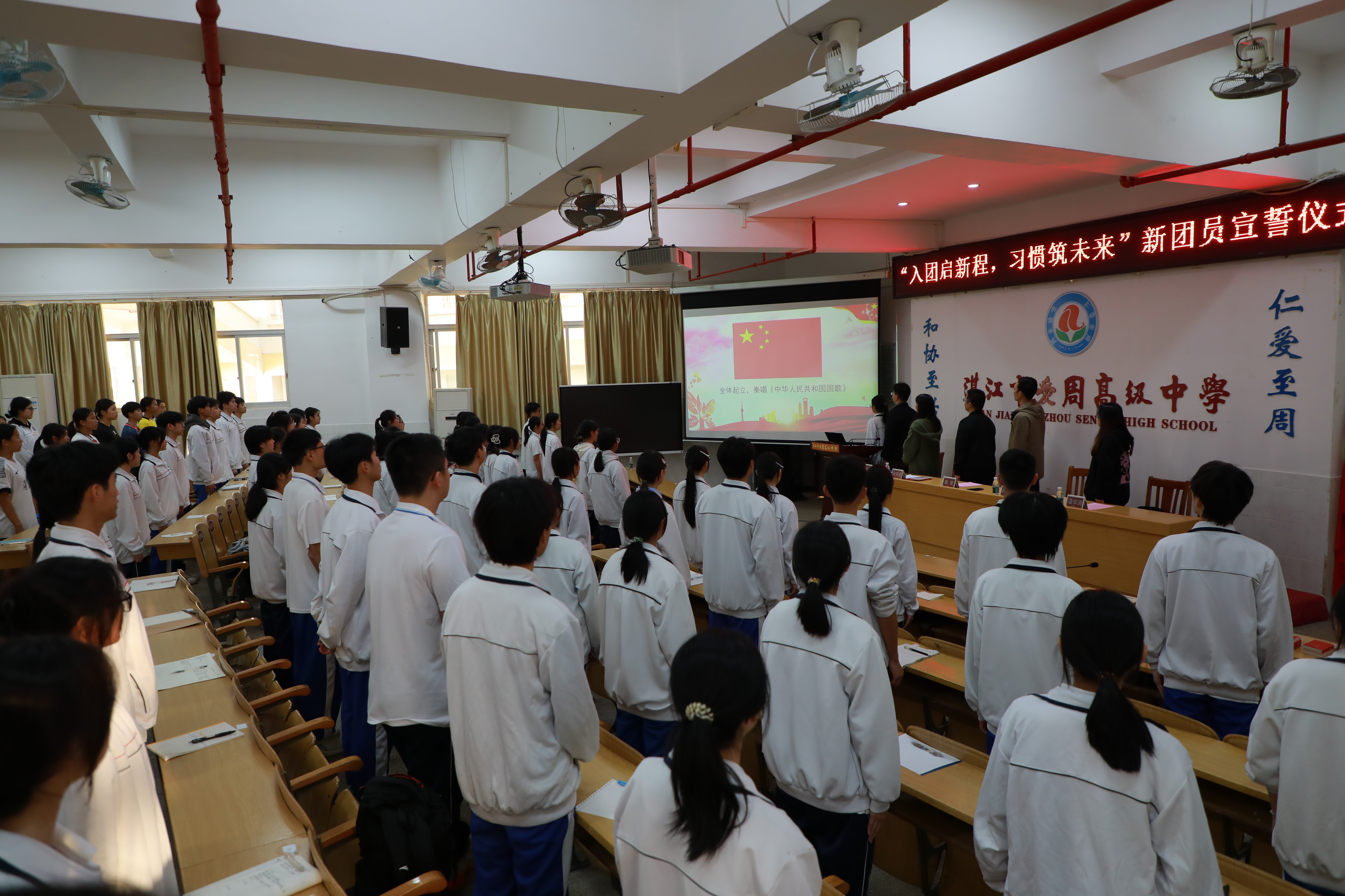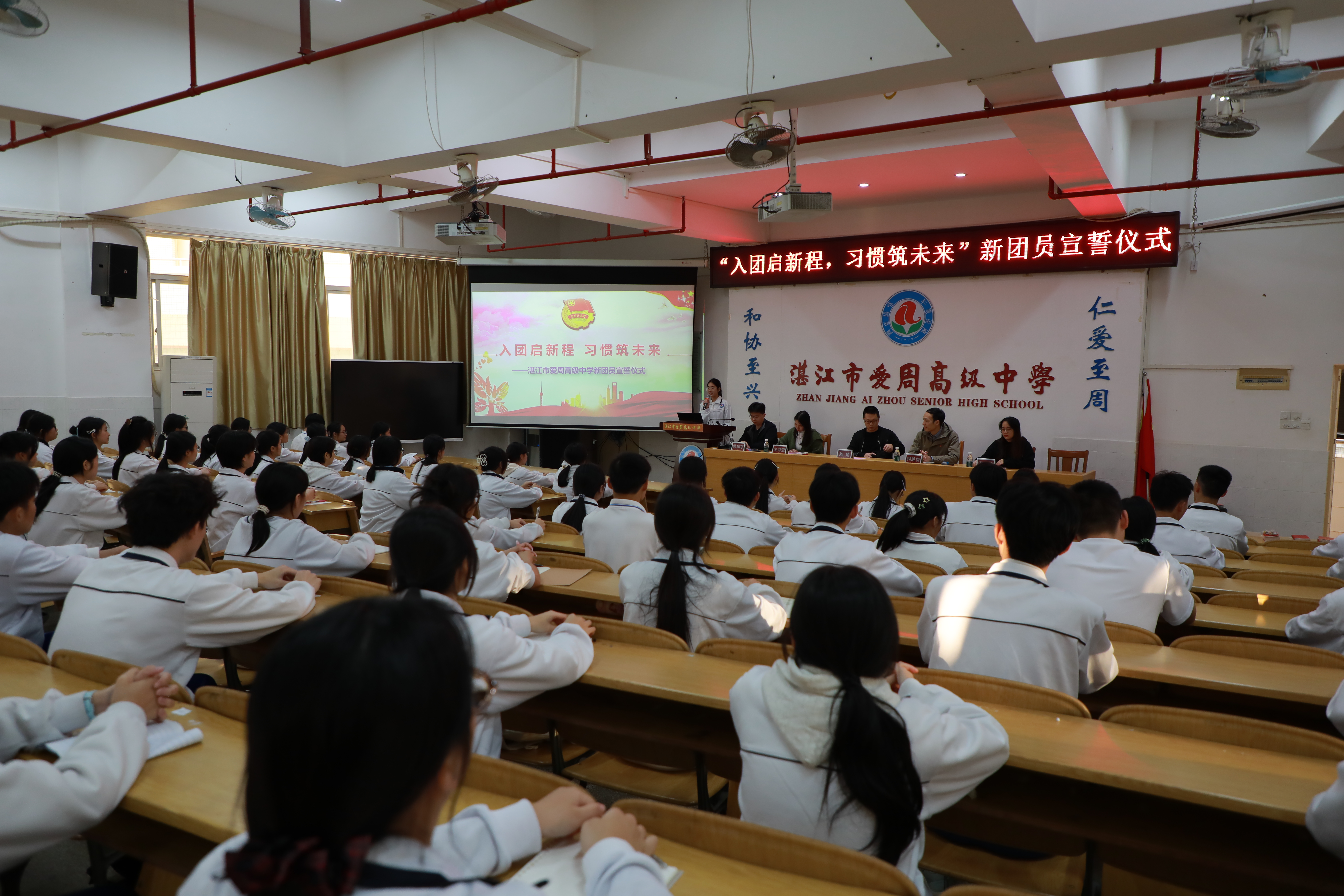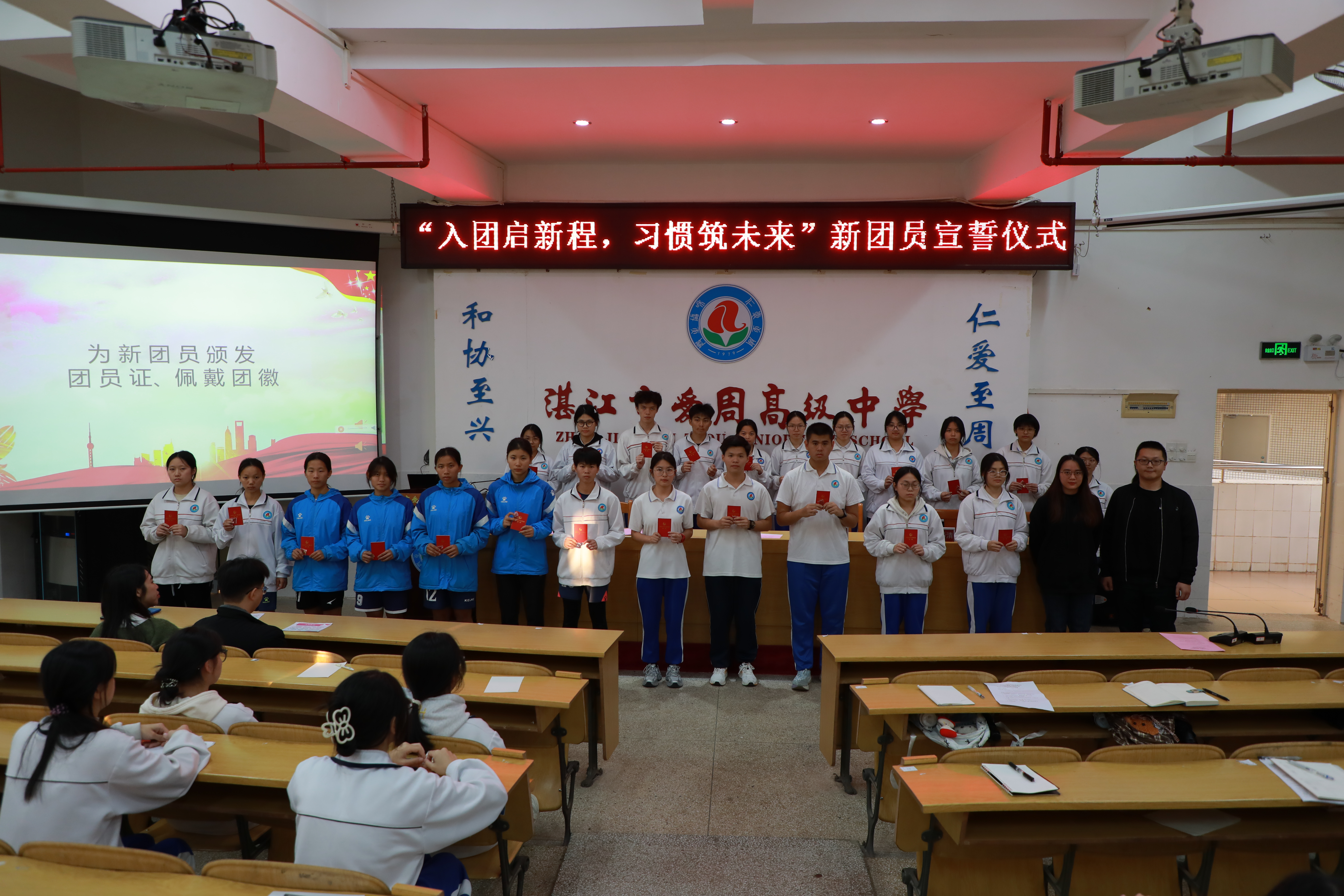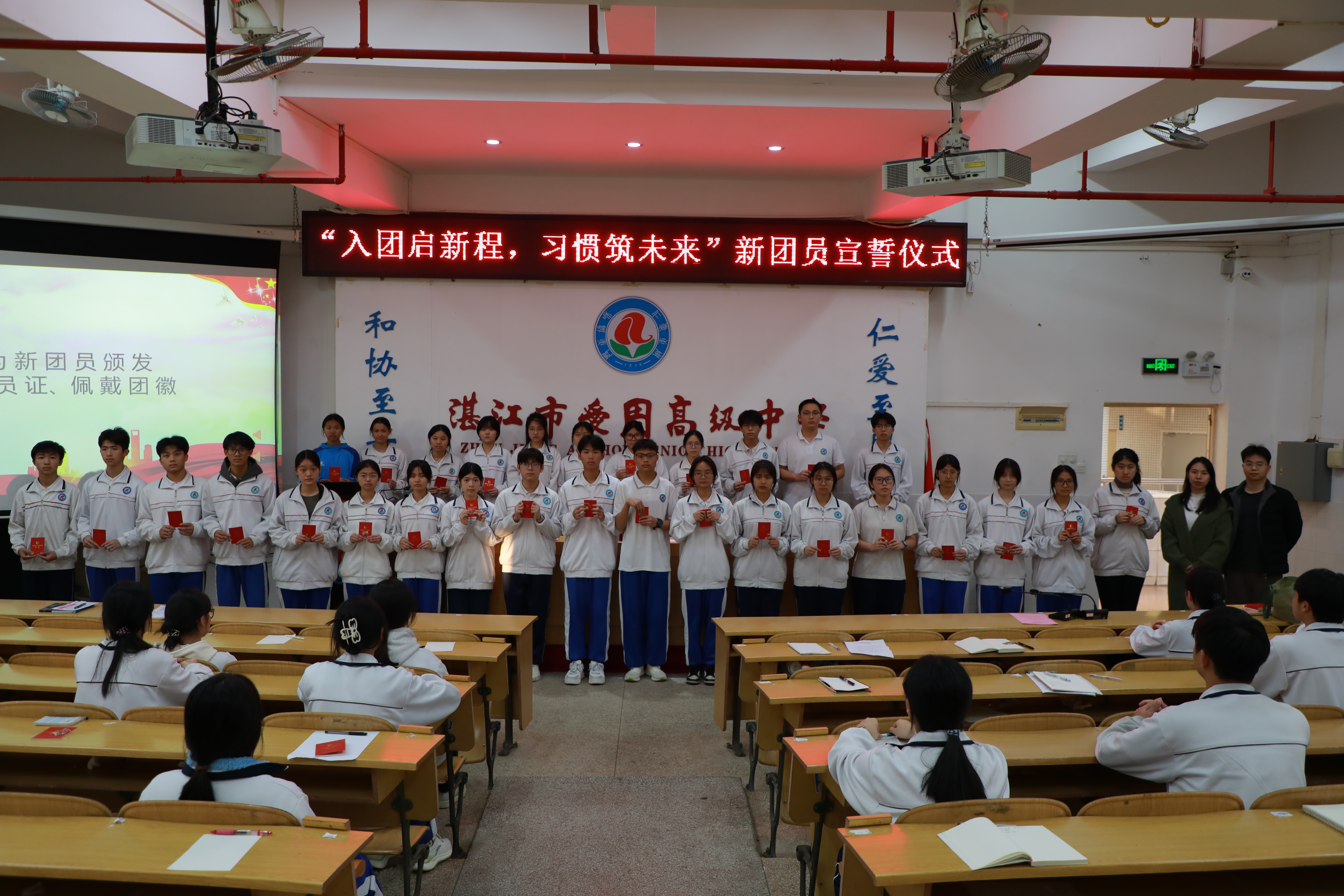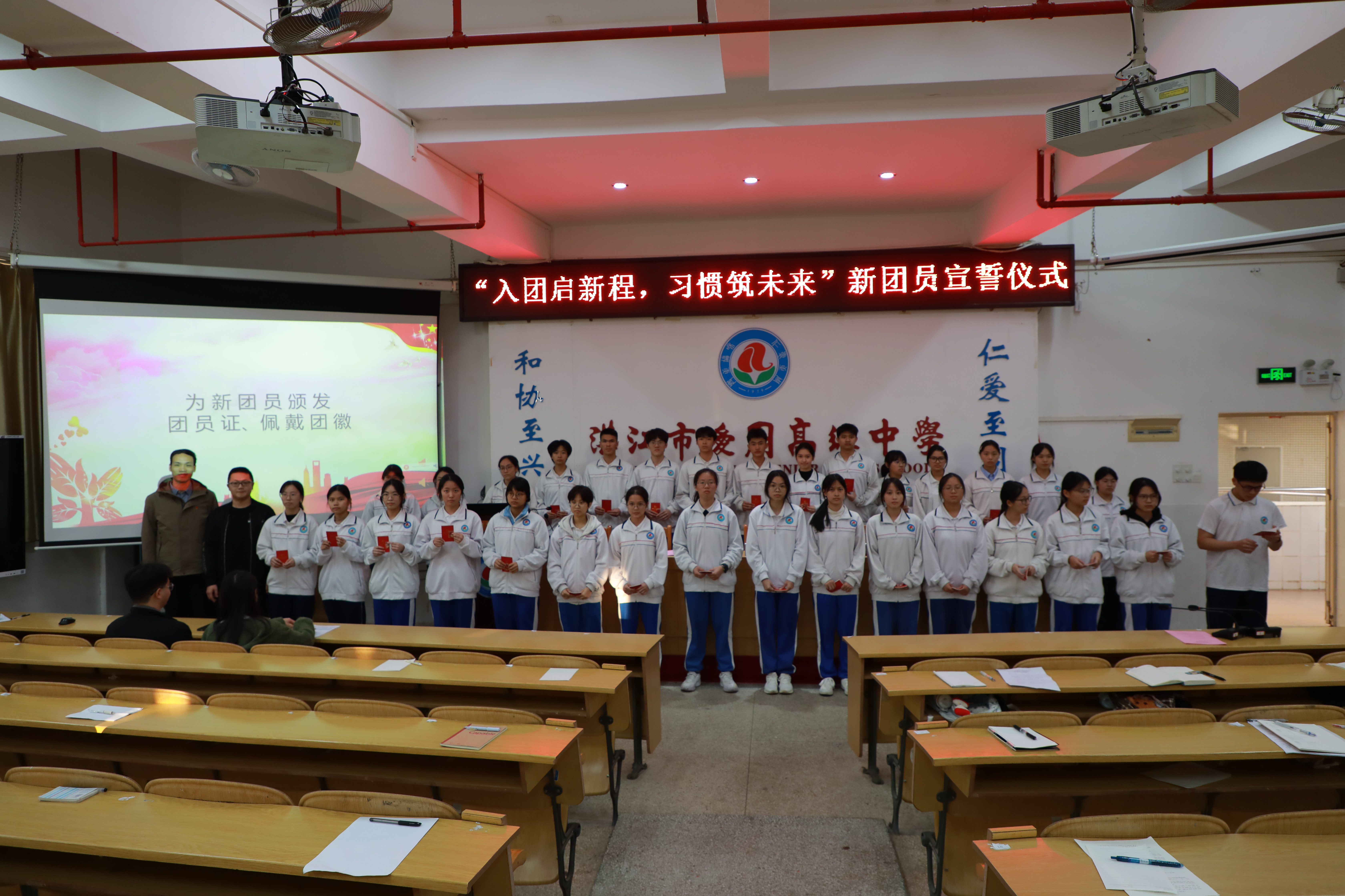 青春逢盛世,奋斗正当时。 1月4日下午,我校在和协楼二楼学术报告厅举行“入团启新程 习惯筑未来”新团员入团宣誓仪式。柯胜智副校长、团委陈楚副书记、团委委员吴诗莹和黄华京老师、教职工团支部温华清老师,与2025年新发展团员共同参加了这一庄严仪式。活动由陈诗欣同学主持。