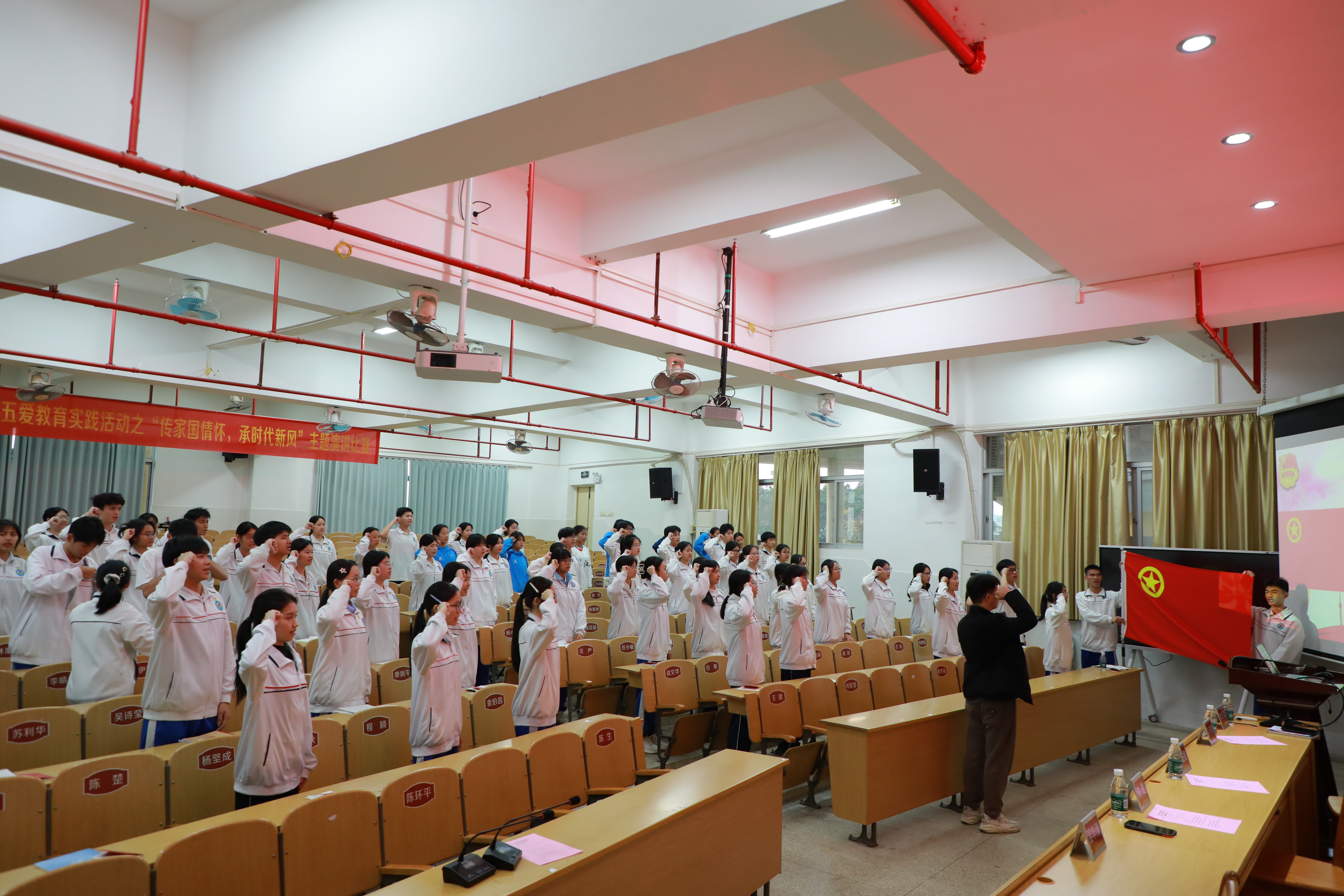 “我志愿加入中国共产主义青年团……”在黄华京老师的带领下,新团员们面向团旗,高举右拳,庄严宣誓。坚定的誓言回荡在整个会场,表达了同学们对团组织的郑重承诺,也传递出他们对理想与信念的追求。