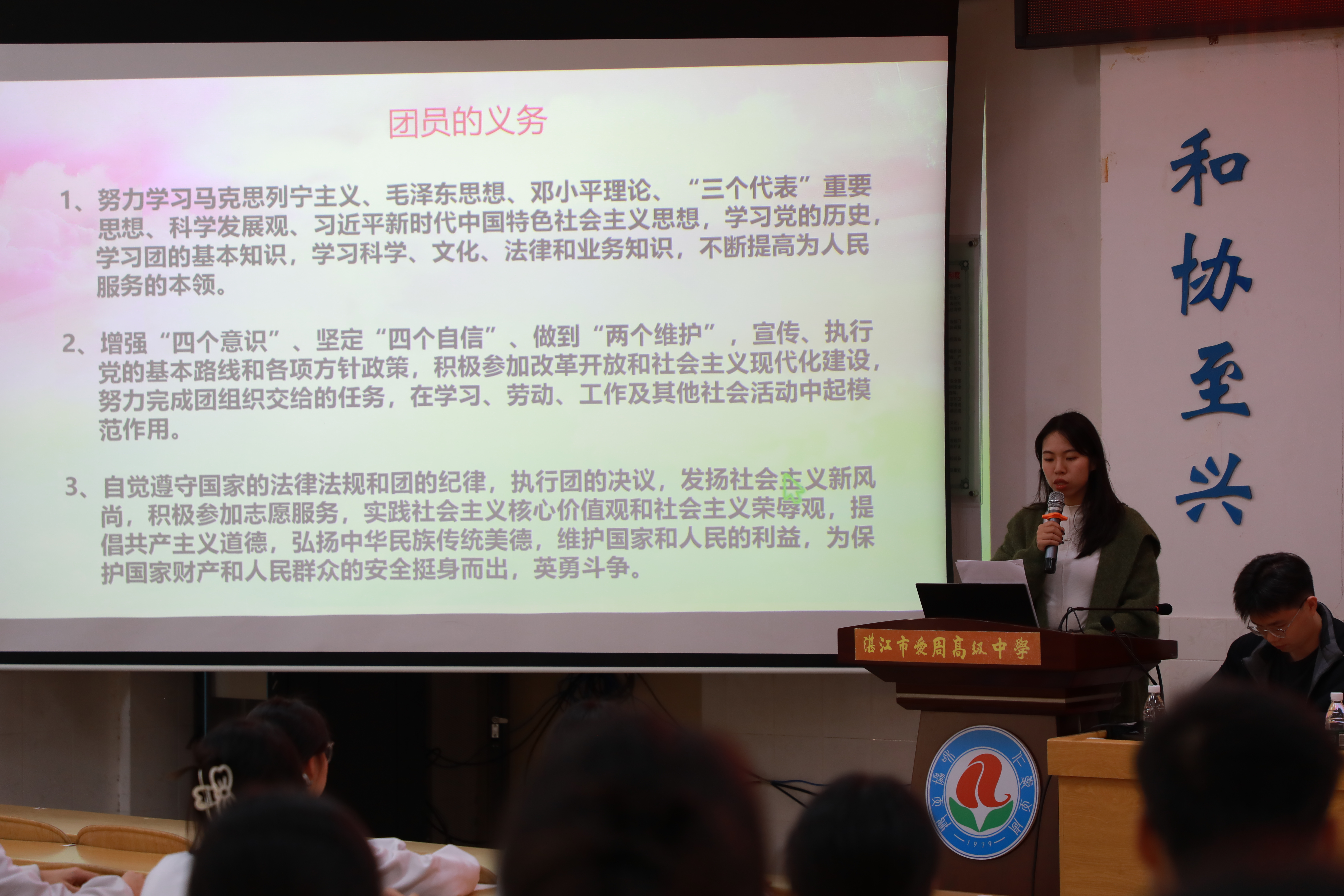 吴诗莹老师随后宣读《团章》中关于团员义务和权利的规定,让新团员们进一步明确自身责任与担当,为今后践行团员使命筑牢思想根基。